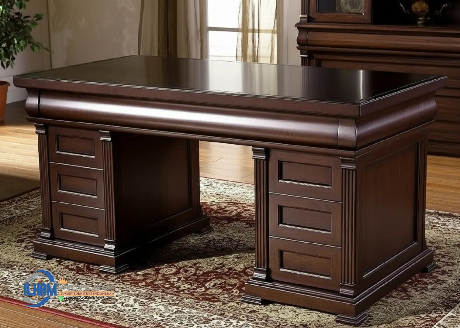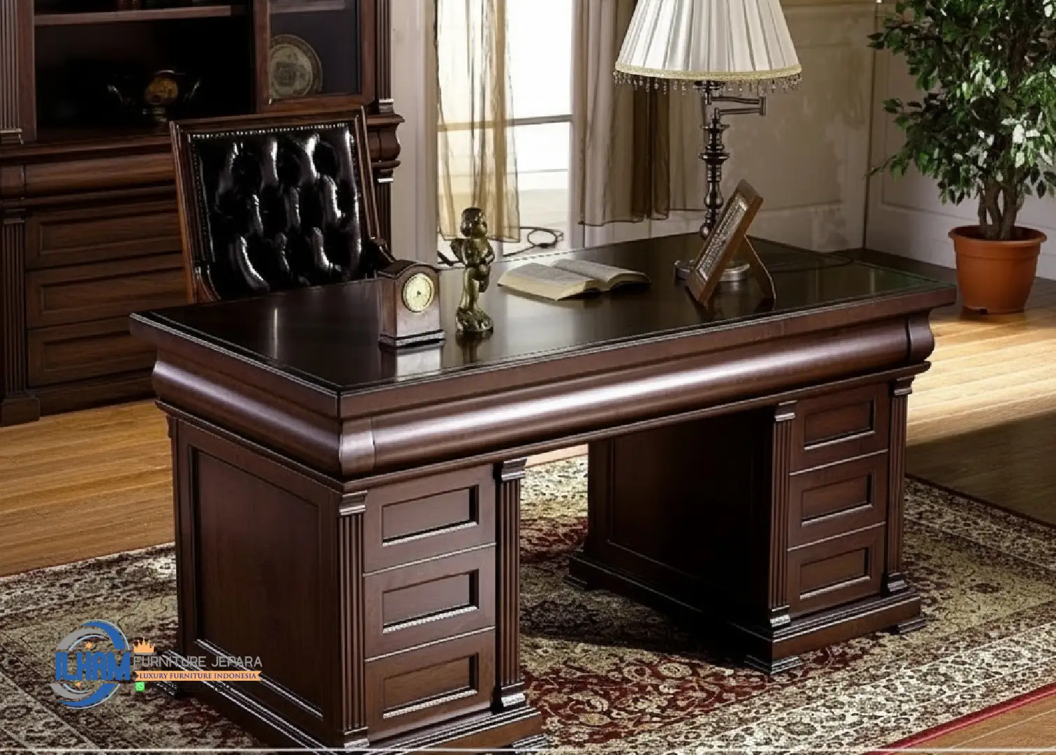 Berbagai pilihan desain dan ukuran memastikan bahwa Anda dapat menemukan meja ruang kerja yang sesuai dengan gaya perusahaan atau kantor Anda. Segera hadirkan nuansa kemewahan dan kesempurnaan dalam ruang kerja kantor Anda dengan set meja kantor klasik mewah yang elegan ini.