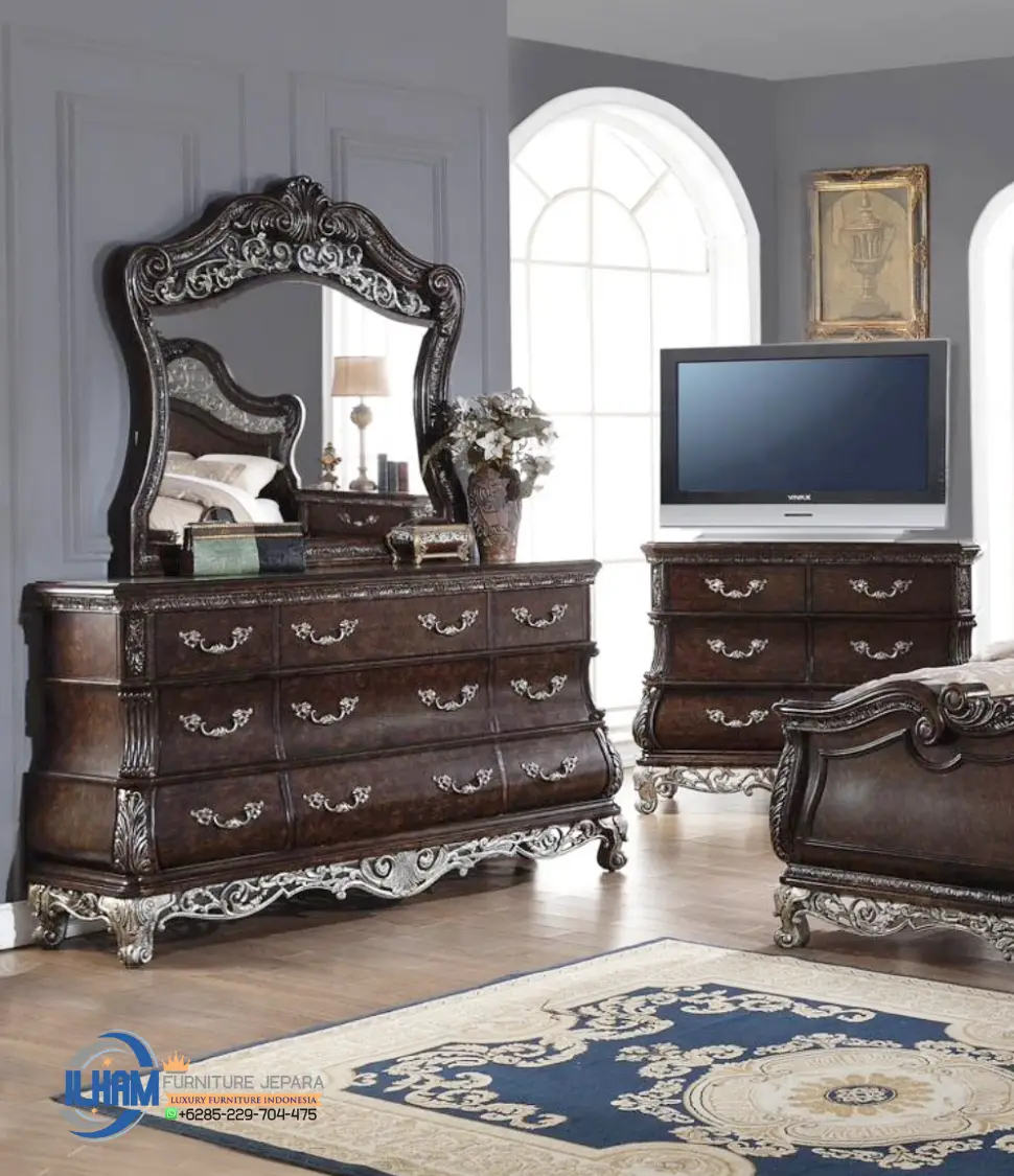 Set Tempat Tidur Model Klasik Ukir Jepara Terbaru Rumah Jakarta Village Bandung Surabaya ini bukan hanya pilihan, tapi pernyataan gaya hidup. Dirancang dengan sentuhan eropa style yang elegan dan dikerjakan oleh pengrajin Jepara ahli, setiap elemen mencerminkan dedikasi pada keindahan yang abadi.